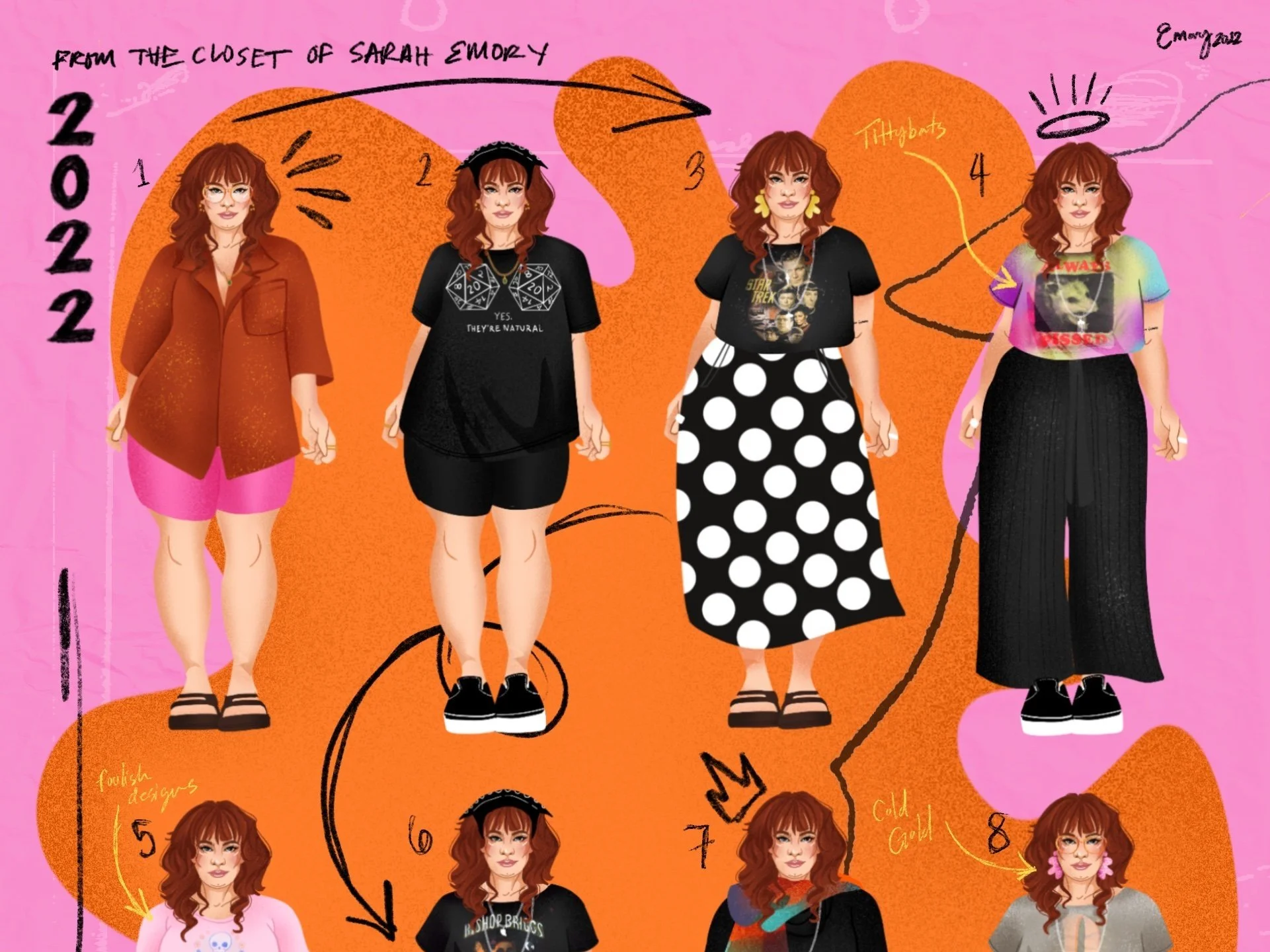 Hi! Iβm Sarah Emory, a designer and illustrator located in Knoxville, Tennessee, currently working as a lead designer for multiple C3 Presents Festivals and as a freelancer in my spare time.